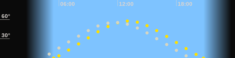| Höchster Sonnenstand (Kulmination) | 13:06 Uhr (h = 57.5°) |