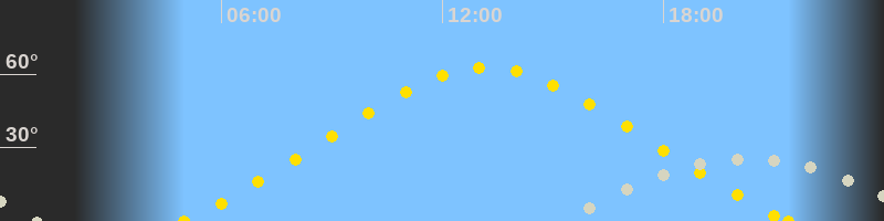 | Höchster Sonnenstand (Kulmination) | 13:11 Uhr (h = 62.7°) |