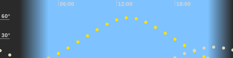 | Höchster Sonnenstand (Kulmination) | 13:12 Uhr (h = 62.7°) |