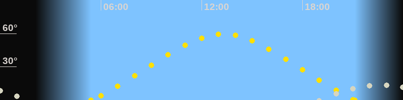 | Höchster Sonnenstand (Kulmination) | 13:16 Uhr (h = 59.5°) |