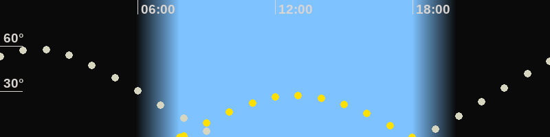 | Höchster Sonnenstand (Kulmination) | 12:54 Uhr (h = 27.5°) |
