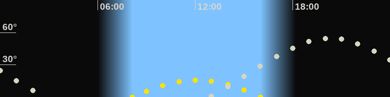 | Höchster Sonnenstand (Kulmination) | 12:05 Uhr (h = 16°) |