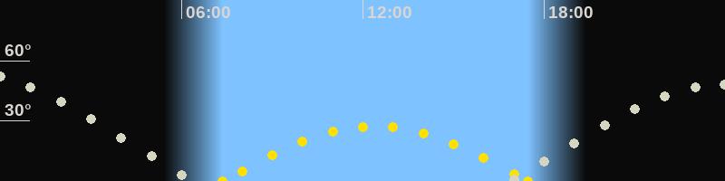 | Höchster Sonnenstand (Kulmination) | 12:24 Uhr (h = 27.3°) |
