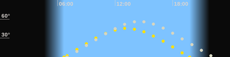 | Sonnenaufgang | 06:40 Uhr im Osten (αAz = 79.9°) |