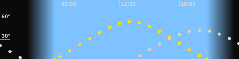 | Sonnenaufgang | 05:30 Uhr im Nordosten (αAz = 60.4°) |