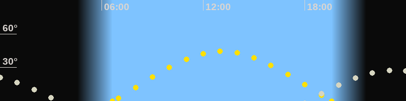 | Sonnenaufgang | 06:37 Uhr im Osten (αAz = 80.7°) |