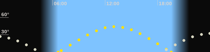 | Höchster Sonnenstand (Kulmination) | 13:07 Uhr (h = 44.2°) |