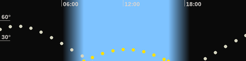 | Höchster Sonnenstand (Kulmination) | 12:17 Uhr (h = 17.4°) |
