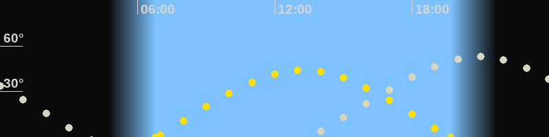 | Sonnenaufgang | 06:47 Uhr im Osten (αAz = 81.9°) |