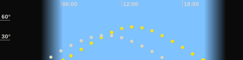 | Sonnenaufgang | 06:12 Uhr im Osten (αAz = 72.4°) |
