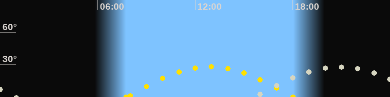 | Höchster Sonnenstand (Kulmination) | 12:54 Uhr (h = 28.2°) |