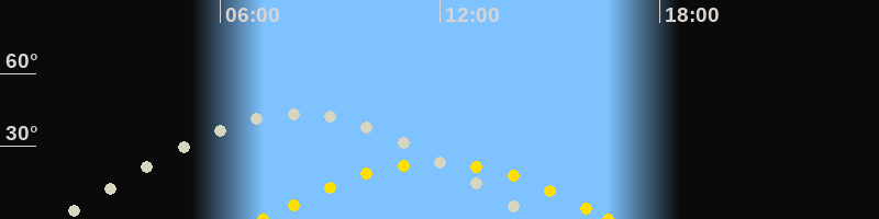 | Höchster Stand (Kulmination) | 08:08 Uhr (h=43.5°) |