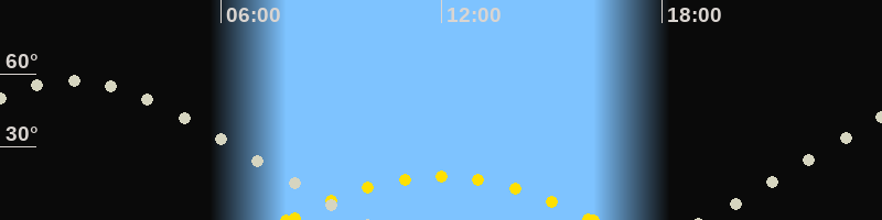 | Höchster Sonnenstand (Kulmination) | 11:58 Uhr (h = 18°) |