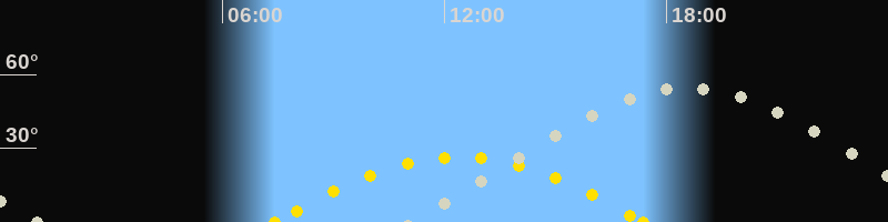 | Sonnenaufgang | 07:25 Uhr im Osten (αAz = 109.8°) |