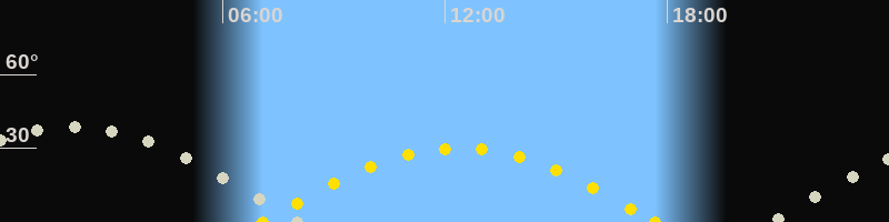 | Höchster Sonnenstand (Kulmination) | 12:23 Uhr (h = 30.1°) |