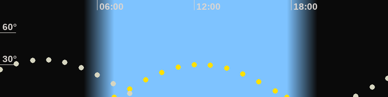 | Höchster Sonnenstand (Kulmination) | 12:23 Uhr (h = 30.5°) |