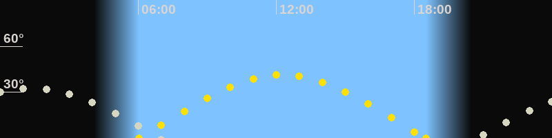 Höchster Sonnenstand (Kulmination)12:16 Uhr (h = 41.4°)