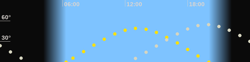 | Sonnenaufgang | 06:19 Uhr im Osten (αAz = 74.1°) |