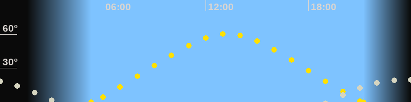 | Höchster Sonnenstand (Kulmination) | 13:16 Uhr (h = 60.3°) |