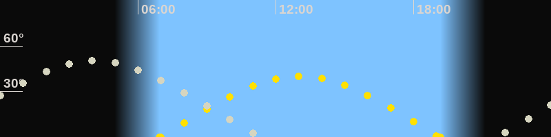 | Sonnenaufgang | 06:55 Uhr im Osten (αAz = 87.8°) |