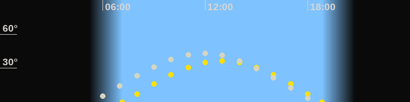| Höchster Sonnenstand (Kulmination) | 13:00 Uhr (h = 36.6°) |