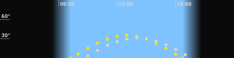 | Sonnenaufgang | 07:14 Uhr im Osten (αAz = 95.2°) |