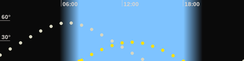 | Höchster Stand (Kulmination) | 06:36 Uhr (h=56.6°) |
