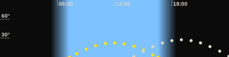| Höchster Sonnenstand (Kulmination) | 11:54 Uhr (h = 22.5°) |