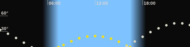 | Höchster Sonnenstand (Kulmination) | 11:54 Uhr (h = 21.4°) |