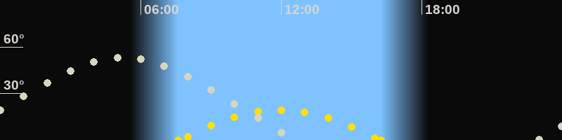| Höchster Sonnenstand (Kulmination) | 11:56 Uhr (h = 19.4°) |