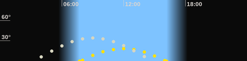 | Höchster Stand (Kulmination) | 09:02 Uhr (h=34.4°) |