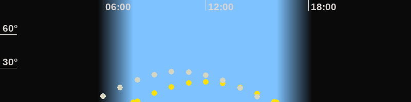 | Höchster Sonnenstand (Kulmination) | 11:58 Uhr (h = 18°) |