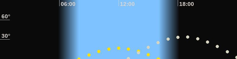 | Höchster Stand (Kulmination) | 18:28 Uhr (h=33.6°) |