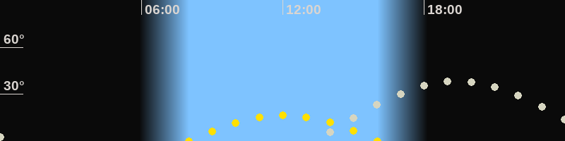 | Sonnenaufgang | 08:01 Uhr im Südosten (αAz = 126.8°) |
