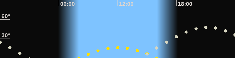 | Höchster Sonnenstand (Kulmination) | 12:03 Uhr (h = 16.3°) |