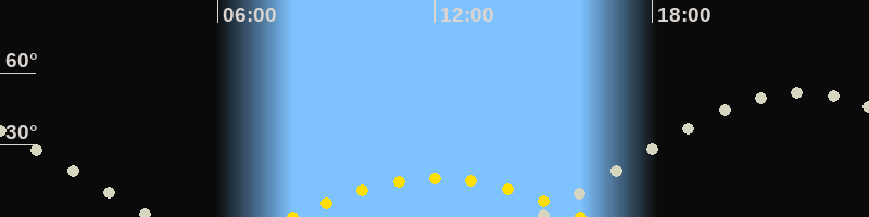 | Höchster Sonnenstand (Kulmination) | 12:03 Uhr (h = 16.2°) |