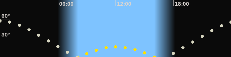 | Höchster Sonnenstand (Kulmination) | 12:05 Uhr (h = 16°) |
