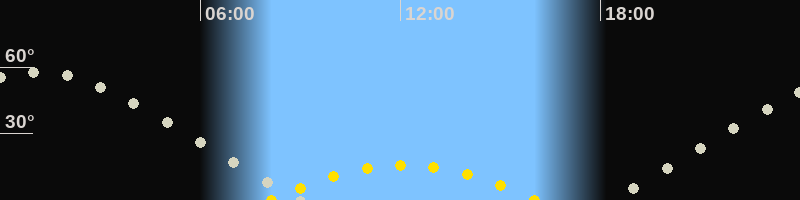 | Höchster Sonnenstand (Kulmination) | 12:05 Uhr (h = 16°) |