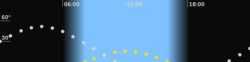 | Höchster Sonnenstand (Kulmination) | 12:07 Uhr (h = 15.9°) |