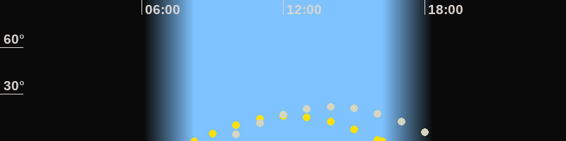 | Höchster Sonnenstand (Kulmination) | 12:13 Uhr (h = 16.2°) |