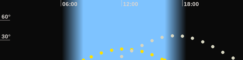 | Höchster Sonnenstand (Kulmination) | 12:15 Uhr (h = 16.6°) |