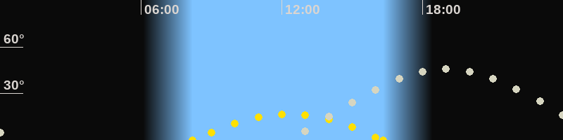 | Höchster Sonnenstand (Kulmination) | 12:16 Uhr (h = 16.8°) |