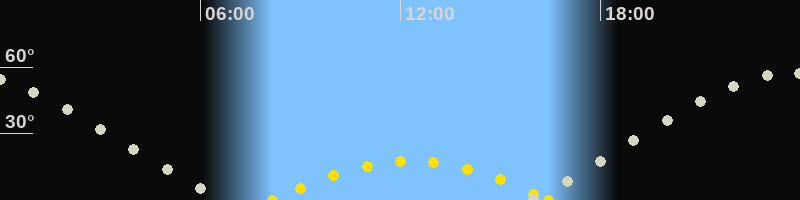 | Höchster Sonnenstand (Kulmination) | 12:18 Uhr (h = 17.6°) |