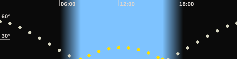 | Höchster Sonnenstand (Kulmination) | 12:18 Uhr (h = 17.7°) |