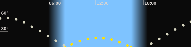 | Höchster Sonnenstand (Kulmination) | 12:19 Uhr (h = 17.9°) |