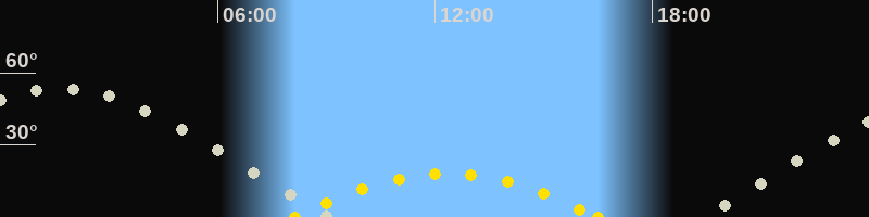 | Höchster Sonnenstand (Kulmination) | 12:19 Uhr (h = 18.1°) |