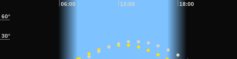 | Höchster Sonnenstand (Kulmination) | 12:23 Uhr (h = 21.5°) |