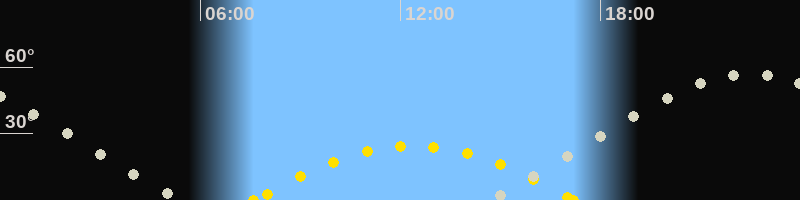 | Höchster Sonnenstand (Kulmination) | 12:24 Uhr (h = 24.4°) |