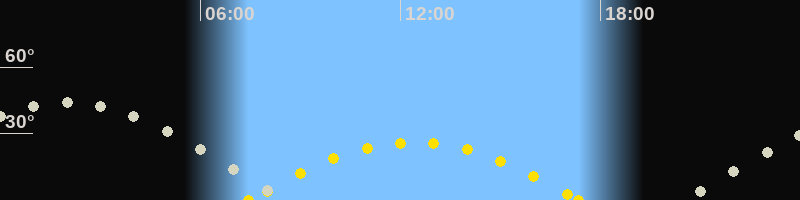 | Höchster Sonnenstand (Kulmination) | 12:24 Uhr (h = 26.1°) |