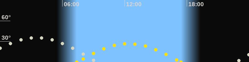 | Höchster Sonnenstand (Kulmination) | 12:24 Uhr (h = 26.8°) |